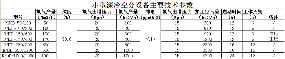 • 小型深冷空分設備